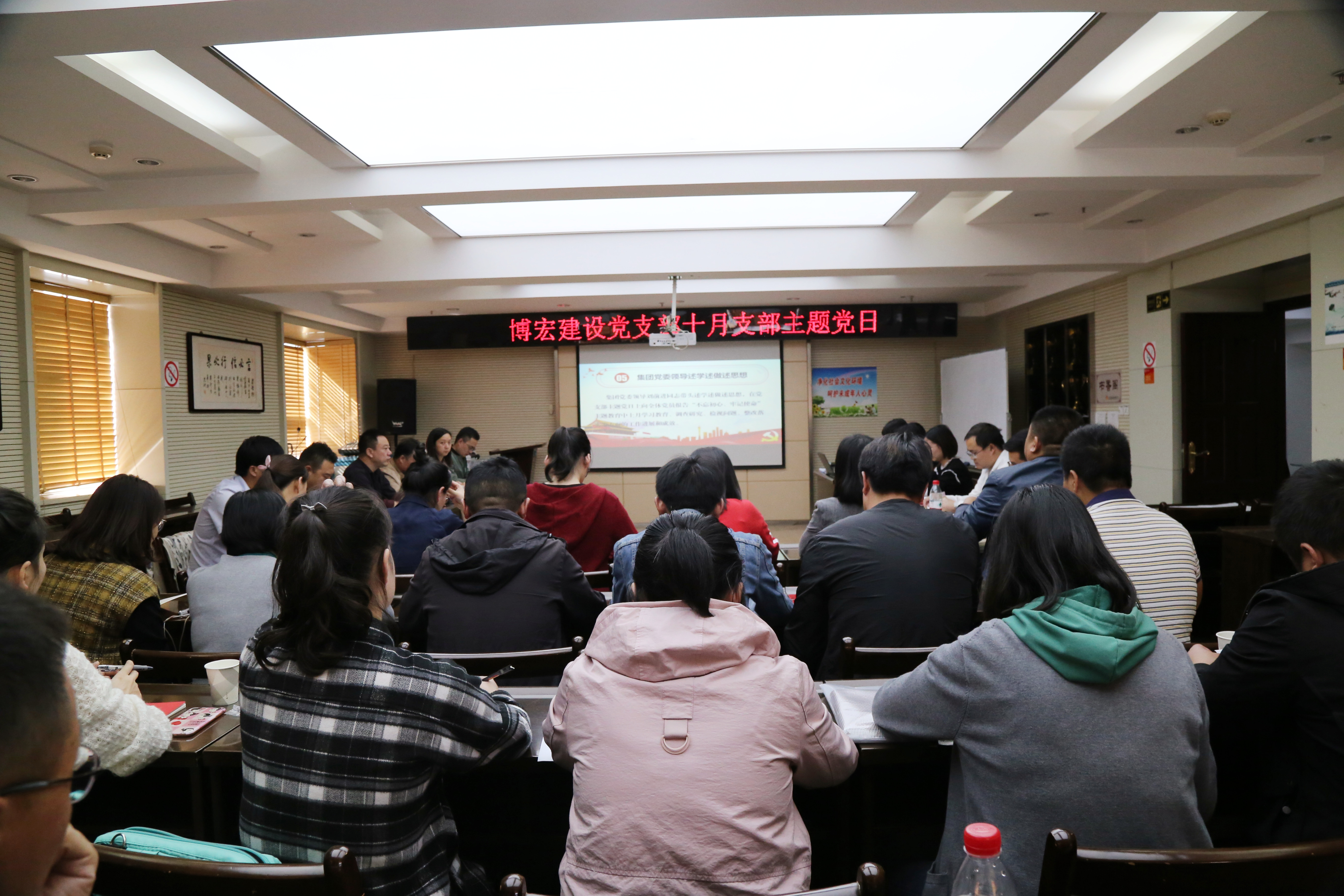 ? ? ? 為扎實開展“不忘初心、牢記使命”主題教育工作,全面把握守初心、擔使命、找差距、抓落實的總要求,10月31日,博宏建設黨支部在公司大會議室召開了以“述學述做述思想,發揮黨員先鋒模范作用”為主題的黨日活動。此次活動包含黨委成員工作匯報、黨員同志學習交流、習總書記重要講話精神學習以及觀看警示教育宣傳片等四個環節。