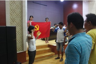 新黨員面向黨旗莊嚴宣誓,參會的所有黨員也重溫了入黨誓詞