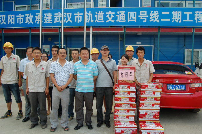 7 月 8 號,集團公司黨委頂著烈日來到鸚鵡洲大橋、玫瑰苑地鐵、福利院、惠民苑、開發區造紙東路等工地,向三伏天堅守一線施工的勞動者們表示親切慰問,送去絲絲清涼。集團公司領導對不畏高溫、堅持在一線辛勤工作的工人們表示問候和感謝,對他們拼搏奉獻的敬業精神予以很高的贊賞,并送上了慰問品——風油精、人丹、綠豆、啤酒等。希望大家在努力工作的同時,注意休息,保重身體,避開高溫時段作業,嚴防中暑。