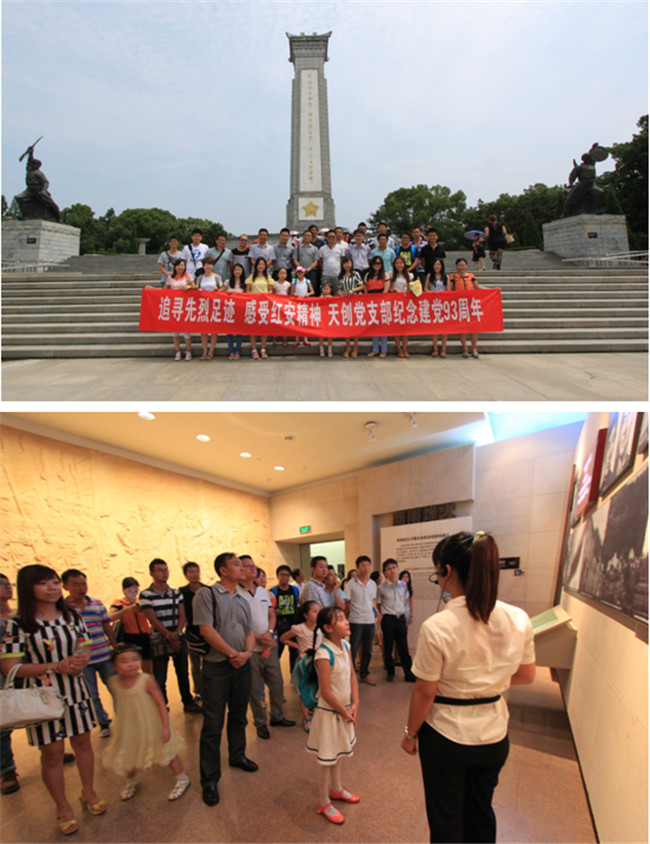 為紀念建黨93周年,進一步推進公司黨的群眾路線教育實踐活動,2014年8月22日上午8:00,天創公司黨支部組織公司全體黨員赴革命老區紅安縣開展了一次紅色教育之旅。