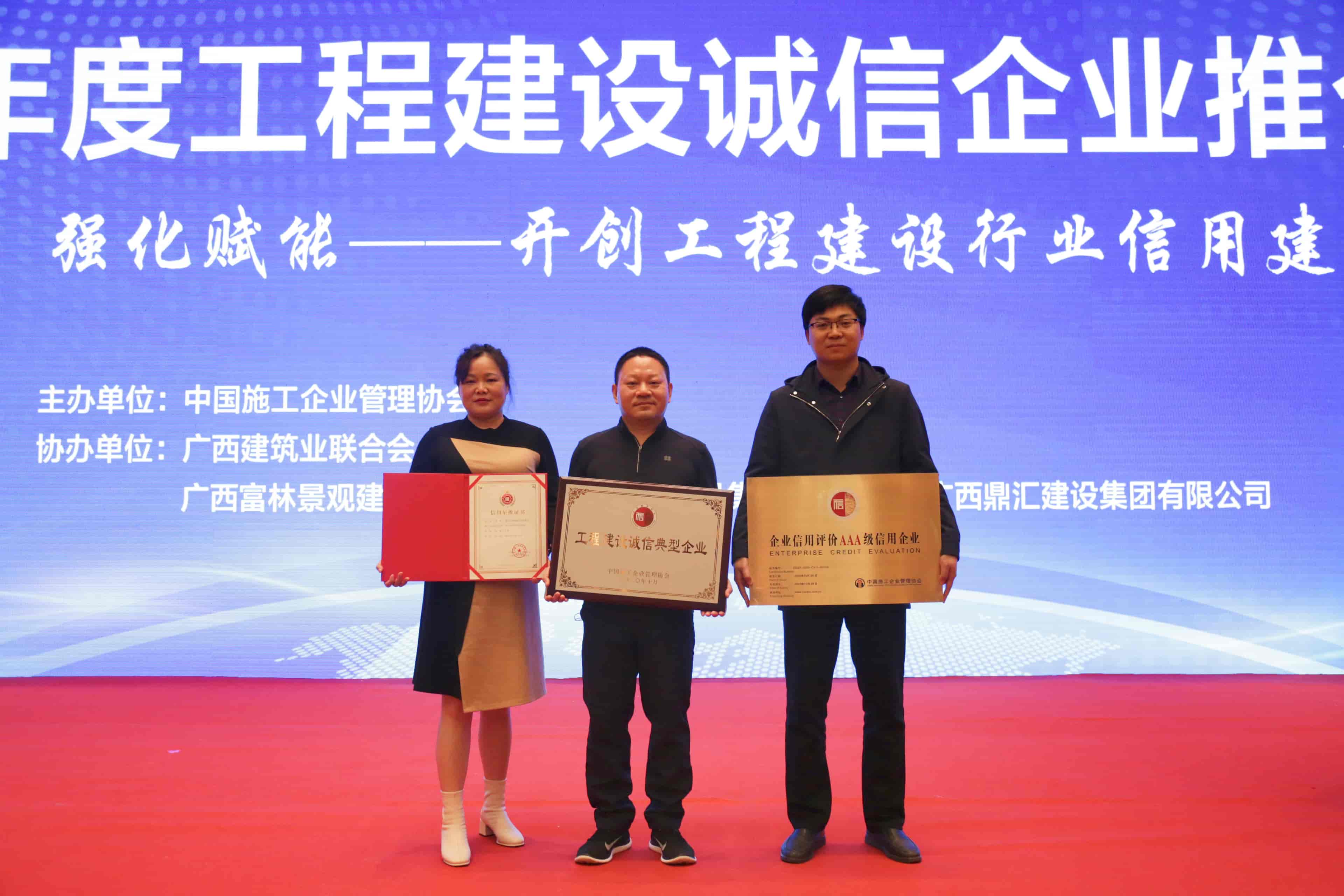 ? ? ? 12月4日,中國(guó)施工企業(yè)管理協(xié)會(huì)在廣西南寧召開“2020年度工程建設(shè)誠(chéng)信企業(yè)推介大會(huì)”。漢陽市政、漢陽市政天創(chuàng)公司、漢陽市政博宏公司榮獲“2020年度工程建設(shè)誠(chéng)信典型企業(yè)”“信用星級(jí)企業(yè)”“AAA信用等級(jí)企業(yè)”3項(xiàng)榮譽(yù),為集團(tuán)企業(yè)信用獎(jiǎng)項(xiàng)開創(chuàng)了新篇章。?