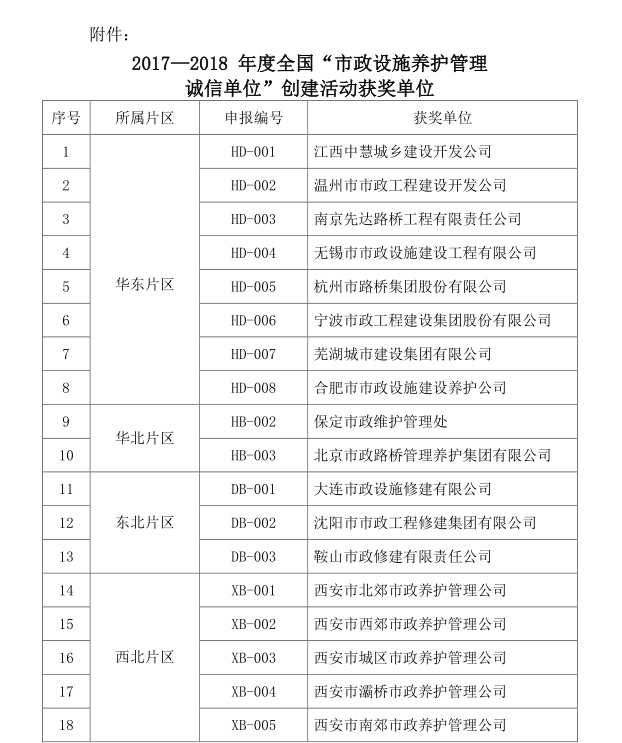 近日,經過中國市政工程協會市政設施管理專業委員會評選,漢陽市政首次榮獲2017-2018年度“市政設施養護管理誠信單位”,彰顯了公司在市政管養領域的模范帶頭作用。