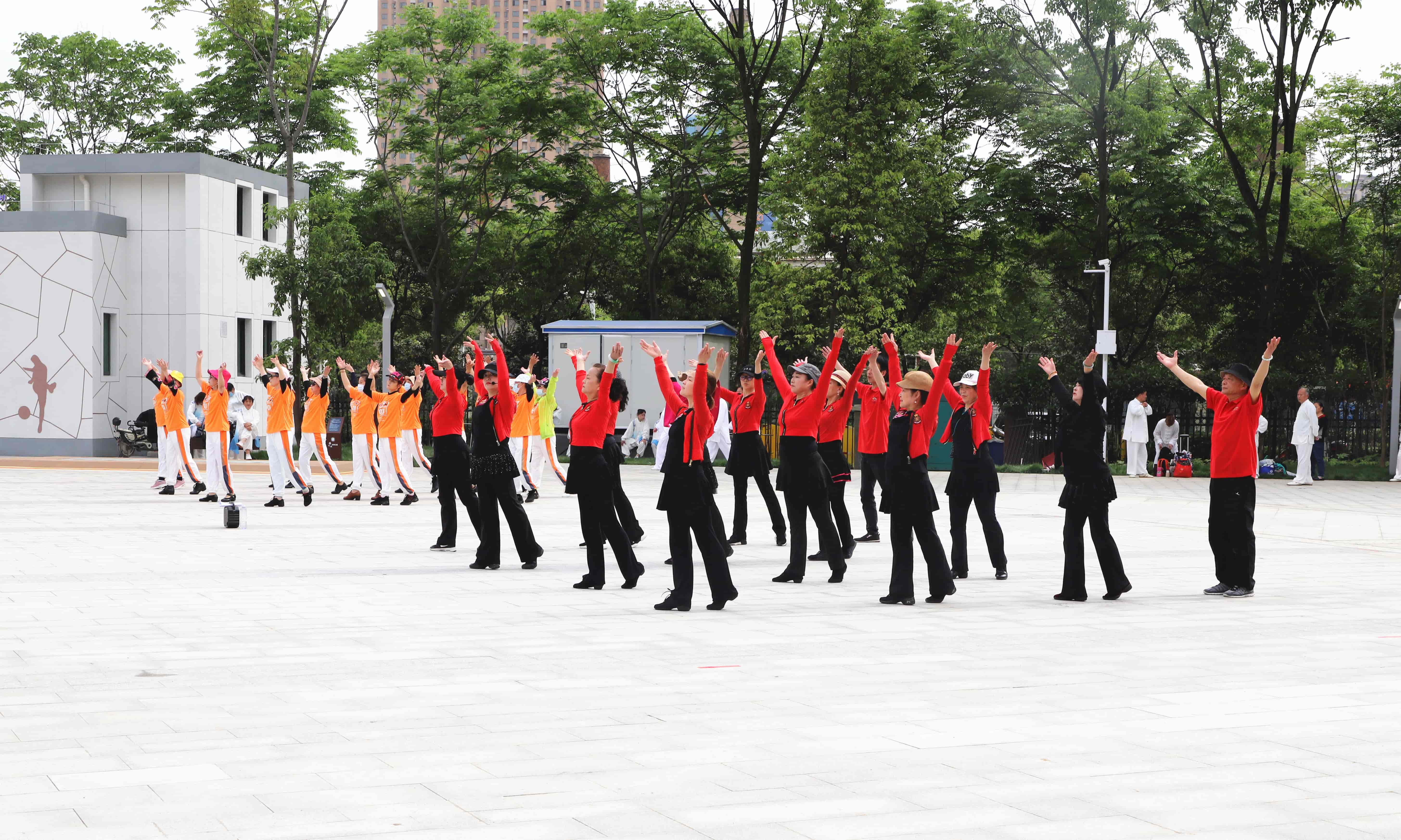廣場舞隊在琴聲全民健身廣場表演