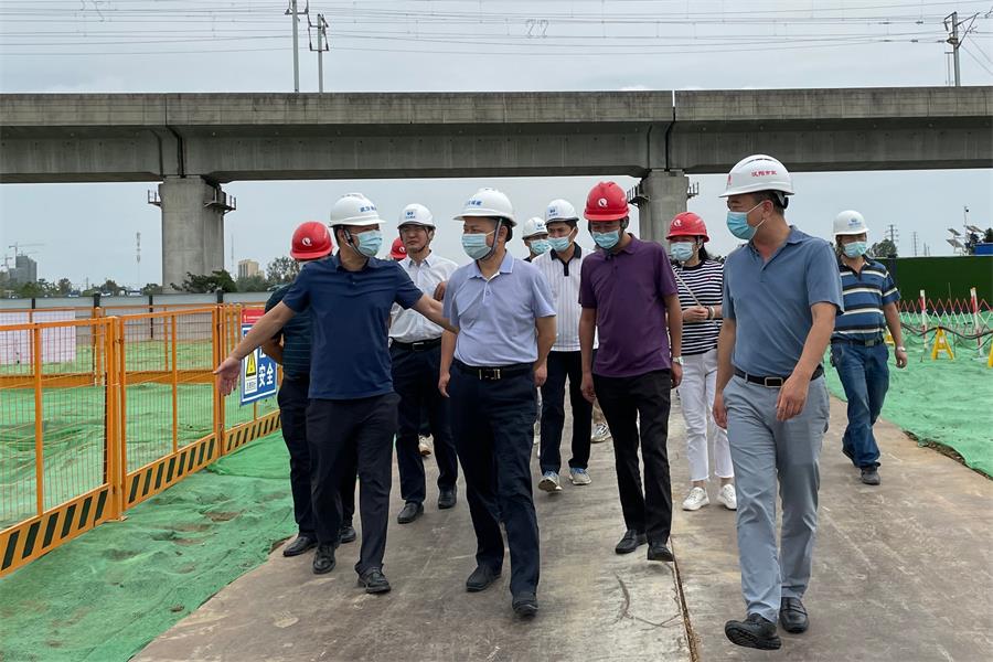 9月6日,湖北省建設工程質量安全監督總站站長楊碧華帶領武漢市城建安全生產管理站站長楊劼、江岸區建筑管理站站長王衛剛來到武漢長江新城浦興路工程現場調研。長江建投公司副總經理傅林,漢陽市政副總經理錢濤,漢陽市政二公司董事長曹元鑫、黨支部副書記肖三秀、副經理羅明飛等陪同調研。