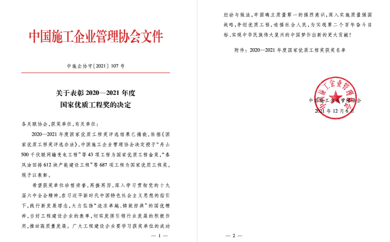 12月7日,中國施工企業管理協會發布2020-2021年度第二批國家優質工程獎名單,漢陽市政承建的東湖綠道二期工程、金山大道工程、武漢食品檢驗中心工程、武漢軌道交通七號線工程共4個項目獲此殊榮,獲獎數量創歷史新高。今年獲評項目首次覆蓋園林、橋梁、軌道交通、房建四大專業領域,公司房建項目在“國家優質工程獎”實現零的突破。截止目前,漢陽市政已累計榮獲10項“國家優質工程獎”。