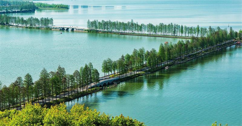 東湖綠道二期是國內首條城區5A級旅游景區綠道,定位為世界級環湖綠道,致力于建設東湖城市生態綠心,傳承楚風漢韻,打造世界級城中湖典范。工程位于武漢市東湖旅游風景區內,環繞湯菱湖、后湖,串聯馬鞍山森林公園和白馬景區。總長約58公里。包含湖澤道等4條主題綠道,建設內容包括:道路、景觀、橋梁、園林綠化、驛站及智慧綠道系統工程等。項目總投資約30.6億元,于2017年6月15日正式開工建設,2018年4月28日通過驗收并投入使用。