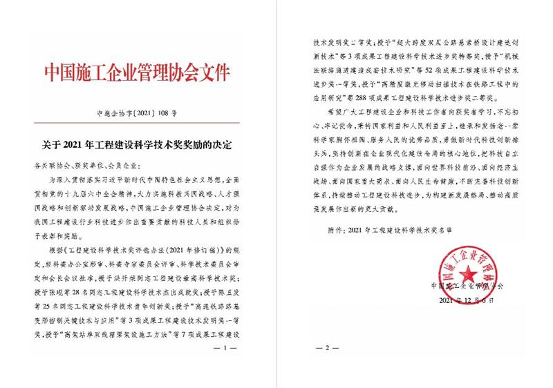 本次獲得國家級科學技術獎項的認定,是對公司長期堅持重視科技研發工作、致力于從實際生產需求出發、解決項目施工各項技術難題的高度肯定!公司也將依托勞模創新工作室的專業研發平臺和技術創新人才,繼續堅持把科技自立自強作為企業發展的戰略支撐,不斷完善科技創新體系,持續推動工程建設科技進步,為構建行業新發展格局、推動行業高質量發展作出新貢獻。