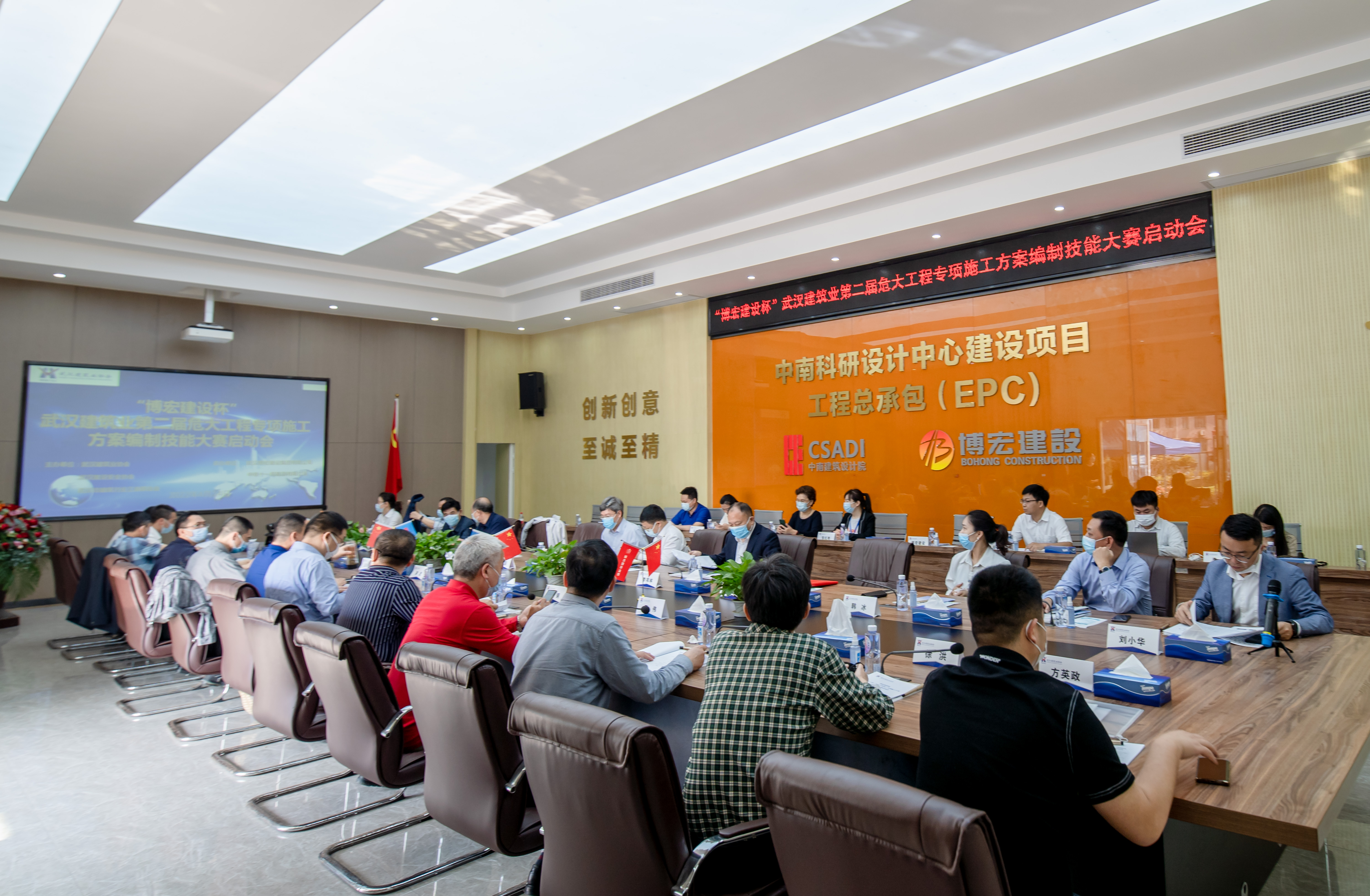 2022年4月24日上午,由武漢建筑業協會主辦的“博宏建設杯”武漢建筑業第二屆危大工程專項施工方案編制技能大賽啟動儀式在漢陽市政承建的中南科研設計中心項目部舉行。武漢市總工會、武漢市建筑行業工會聯合會負責人韓冰,武漢建筑業協會副會長劉慶等主辦方相關領導,武漢建筑業協會會員單位工程師、專家及教授共同出席本次活動。