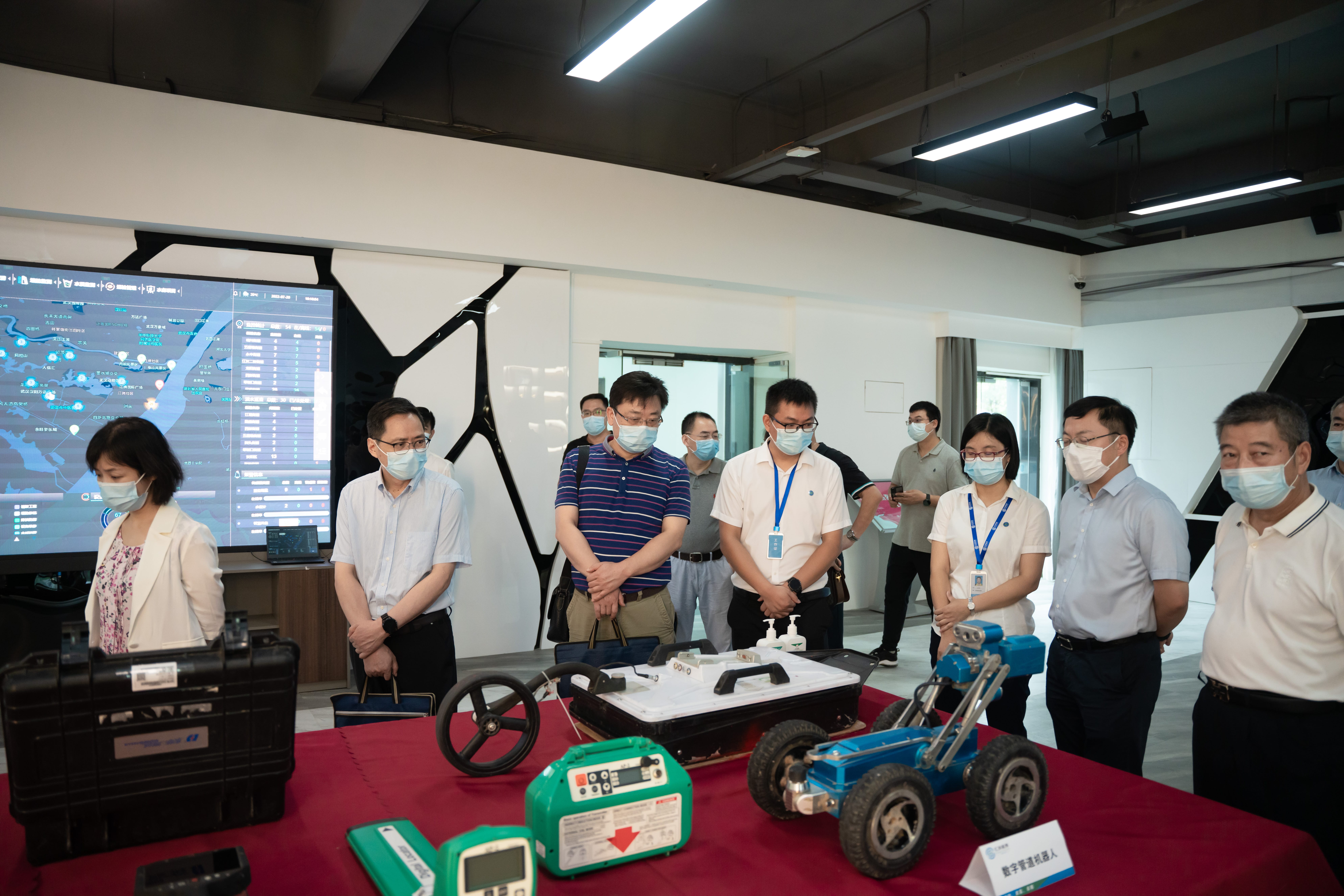 調研組一行首先參觀了檢測公司的實驗區,在講解員的介紹下了解了道路綜合檢測車、三維雷達探測車以及落錘車的基本工作原理。隨后,調研組體驗了房屋巡查體感操作系統,近距離參觀了數字管道機器人、TZ12全站儀、經緯 M300 RTK、禪思P1等一批高新設備。漢陽市政檢測公司始終聚焦智能化檢測,大力引進核心技術和高新人才,擁有一大批先進的檢測設施和完備的資質參數。十四五以來,堅定不移地貫徹落實十四五規劃精神,將提質增效作為企業發展首要目標,在今年還取得了湖北省“專精特新”企業稱號。