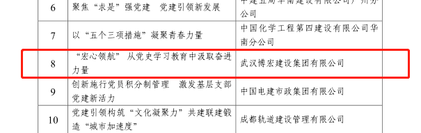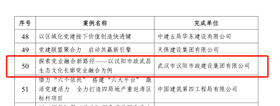 近日,中國施工企業(yè)管理協(xié)會(huì)發(fā)布《關(guān)于推廣工程建設(shè)企業(yè)黨建工作最佳案例和優(yōu)秀案例的通知》,漢陽市政3項(xiàng)黨建案例榜上有名。其中,《探索黨業(yè)融合新路徑—以漢陽市政武昌生態(tài)文化長(zhǎng)廊黨業(yè)融合為例》成功入選工程建設(shè)企業(yè)黨建工作最佳案例,《探索黨業(yè)融合新路徑—以武昌生態(tài)文化長(zhǎng)廊黨業(yè)融合為例》《“宏心領(lǐng)航”,從黨史學(xué)習(xí)教育中汲取奮進(jìn)力量》入選工程建設(shè)企業(yè)黨建工作優(yōu)秀案例。