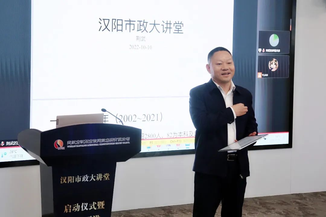 ? ? 大講堂特聘講師荊武為大家?guī)韺n}分享。他回顧了漢陽市政奮斗不息的發(fā)展歷程,總結(jié)了自己20余年工作經(jīng)歷,所提到的每一個經(jīng)典案例猶如一幅畫面,生動呈現(xiàn)。同時他也向?qū)W員提出以下期望與要求:一是跟隨時代腳步樹立正確的價值觀;二是保持求知若渴的心態(tài),豐富知識儲備,增長經(jīng)驗(yàn)才干;三是為未來做準(zhǔn)備,不斷提升自我價值。