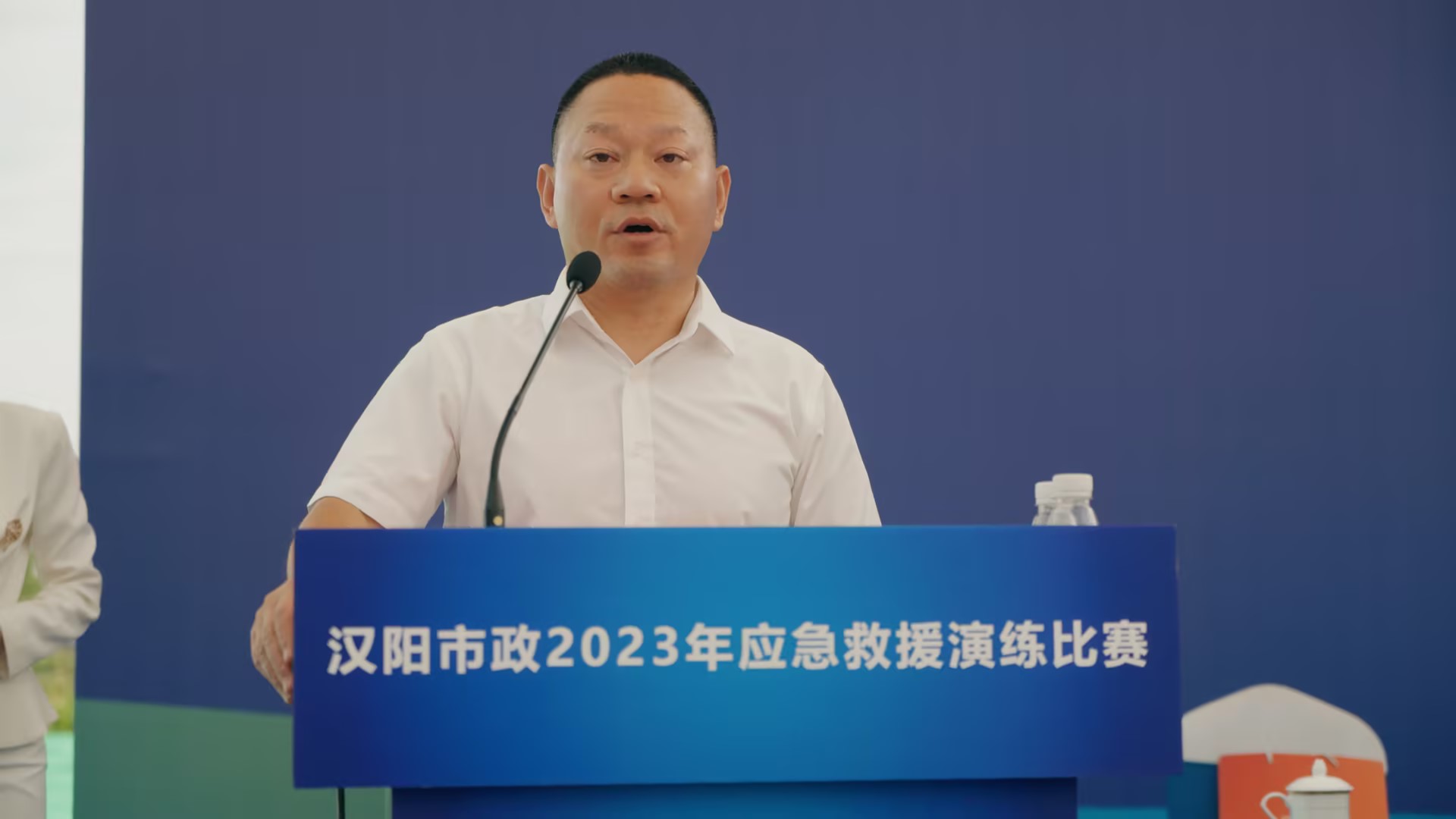 漢陽市政總工程師、演練活動總指揮荊武致辭。他提到,漢陽市政始終堅持“居安思危,穩健拓新”的發展理念,堅持“安全生產,自覺規范”的安全理念,強化安全生產管理,切實維護人民群眾生命財產安全。希望各參賽隊伍規范落實救援動作,加強協作,凸顯漢陽市政優秀的安全管理和應急救援水平。