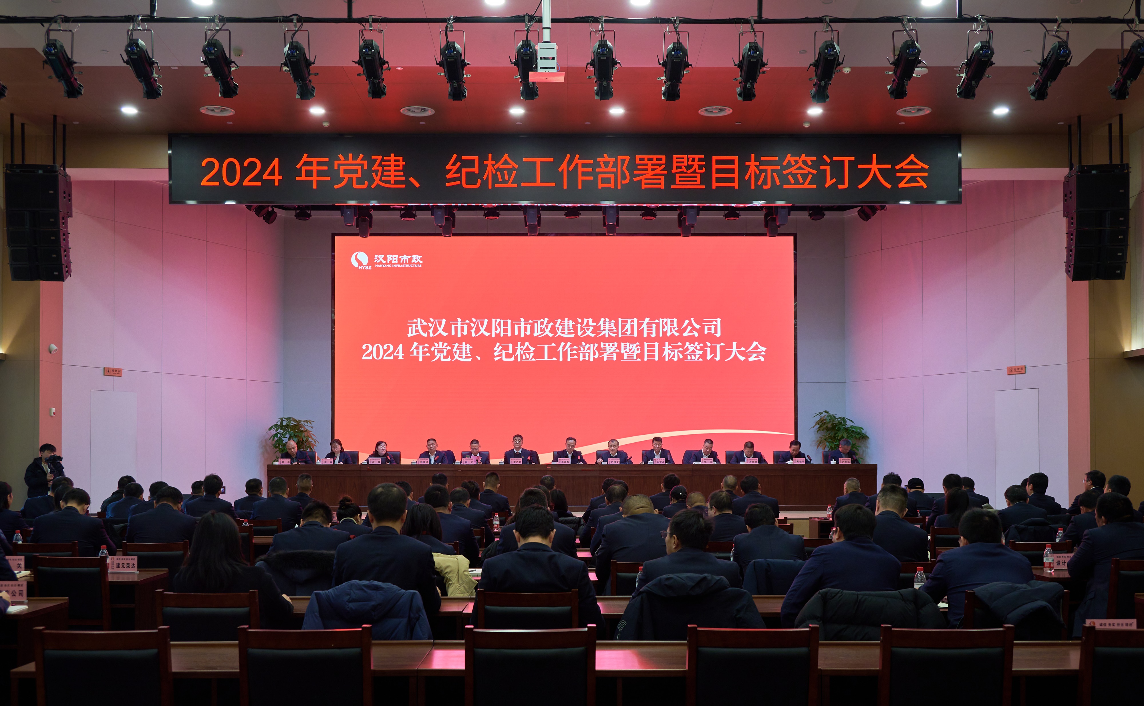 2月28日上午,漢陽市政召開2024年黨建、紀檢工作部署暨目標簽訂大會。漢陽區建設局局長朱源松蒞臨指導,漢陽市政黨委書記、董事長嚴悌文,副董事長虞志鵬,總經理王智高等黨委班子成員,集團及分子公司副科及以上干部、各部門負責人參加會議。