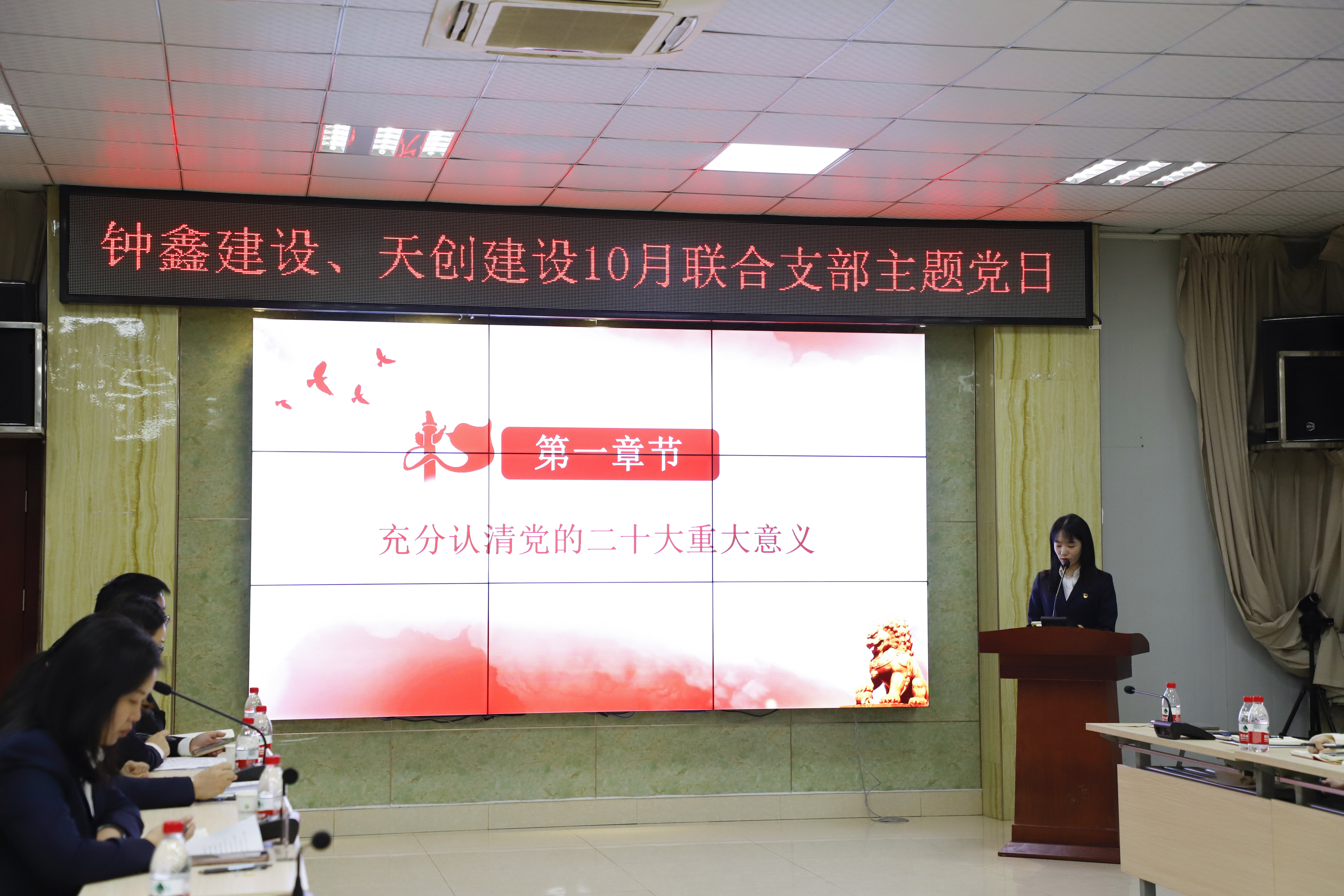 為深入貫徹黨的二十大和二十屆三中全會精神,增進兄弟單位溝通交流、互學互鑒,促進黨建與業務深度融合,10月21日下午,漢陽市政天創建設機關黨支部與鐘鑫建設機關黨支部開展聯合黨日活動。天創建設黨委副書記、工會主席肖三秀同志,鐘鑫建設黨委副書記、工會主席李艷娥同志出席活動,鐘鑫建設機關黨支部組織委員楊潔同志任主持人,天創建設機關支部黨員代表、鐘鑫建設機關支部全體黨員參加此次活動。