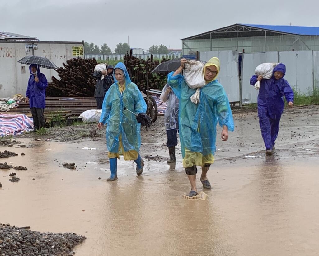 ? ? ? 危機面前,博宏公司常務副總經理蘇琦緊急趕赴仙桃,迅速組織管理人員及工人近百人,調用大小挖機十余臺,全力以赴冒雨搶險,開展防汛救災。為堵住決口,搶險隊員冒著大雨扛著重達50余斤的土石袋,奔走在泥濘不堪的河堤上。隨著一袋袋土石運到堤壩上,隊員們手拉肩扛用生命筑起“生命之堤”,暫時擋住了洶涌的洪水。但隊員們沒有時間休憩,為了徹底堵住決口,必須用鋼管加固河堤,現場人員又連夜焊接搬運鋼管,爭分奪秒堵堤搶險。搶險隊員們眾志成城,萬眾一心,奮戰至7日凌晨1點,最終用鋼板堵住了決口處,險情終于得到緩解。