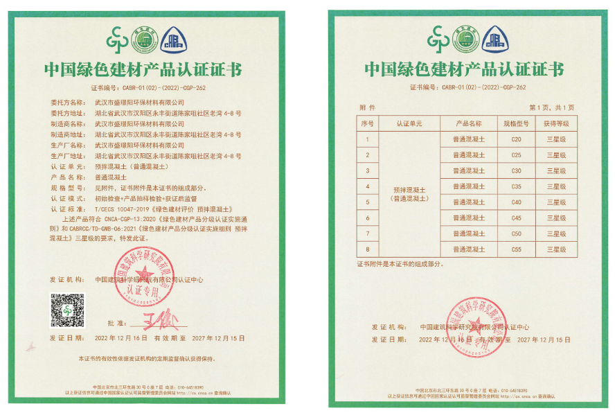 ? ? 近日,喜報(bào)傳來,漢陽市政盛璟陽公司順利通過評(píng)審程序,相繼取得了“三星預(yù)拌混凝土綠色生產(chǎn)評(píng)價(jià)證書”及“綠色建材三星認(rèn)證證書”,成為一家榮獲“綠色生產(chǎn)+綠色建材”雙三星認(rèn)證企業(yè)。