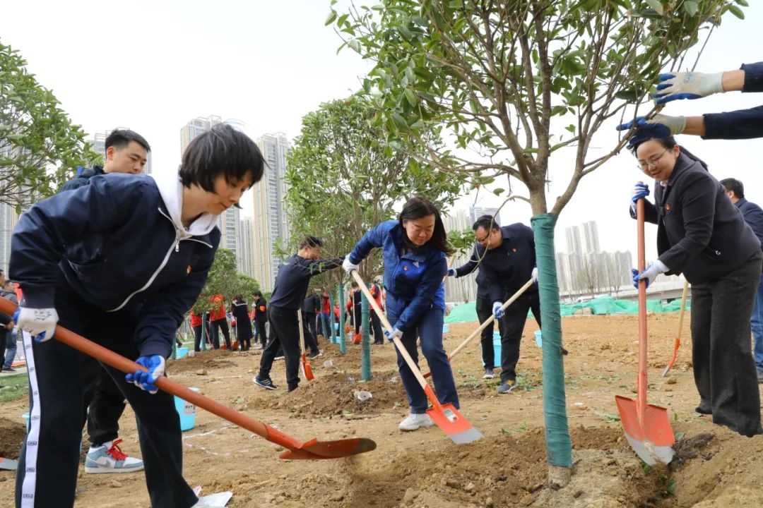 最后,植樹環(huán)節(jié),大家紛紛戴上志愿者袖章、馬甲及帽子,進行植樹前的準(zhǔn)備工作。“咔咔咔……”,現(xiàn)場植樹鏟土的聲音此起彼伏,大家在這里揮灑汗水,種下一片青翠,系掛祝福書簽,許下更美好的未來。