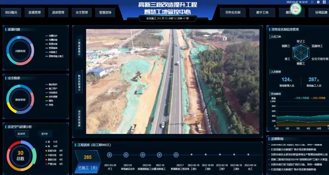 高新三路項目以BIM為載體,以業(yè)務(wù)為核心,以數(shù)據(jù)為導(dǎo)向,以成本管理、質(zhì)量管理、進度管理、安全管理、設(shè)計管理、技術(shù)管理、物資管理、合同管理為模塊,展開數(shù)字化相關(guān)管理工作,將模型的管理數(shù)據(jù)與設(shè)計屬性數(shù)據(jù)進行系統(tǒng)集成,借助BIM+GIS提高項目管理效率和質(zhì)量。對項目進行過程控制及分析,打通各個業(yè)務(wù)之間、各個參與單位之間數(shù)據(jù)聯(lián)系,確保數(shù)據(jù)唯一性,解決數(shù)據(jù)孤島,搭建“數(shù)字化智慧工地”,為管理決策提供依據(jù),為項目管理提供強大、智能、高效、精準(zhǔn)的管理手段。