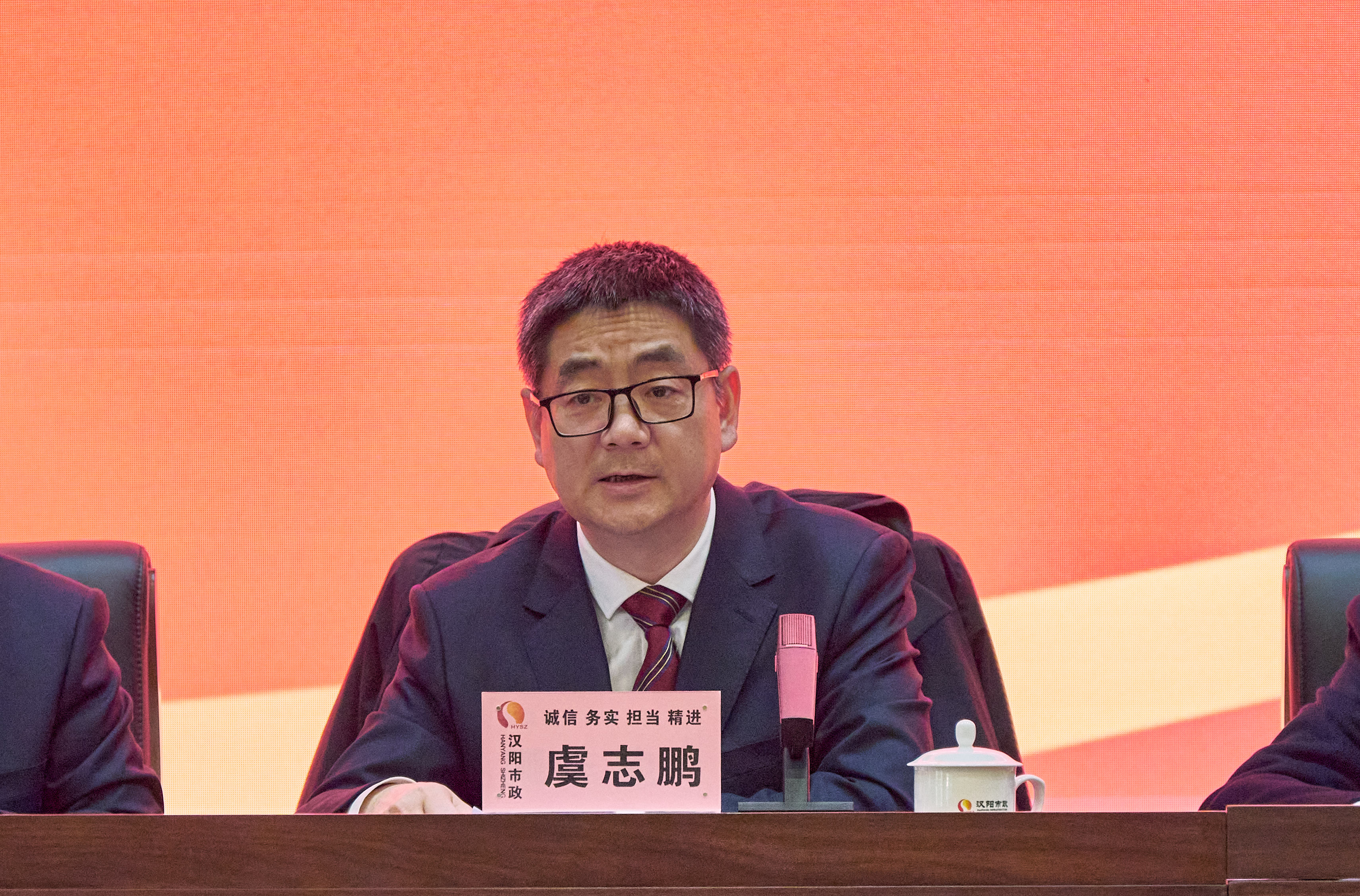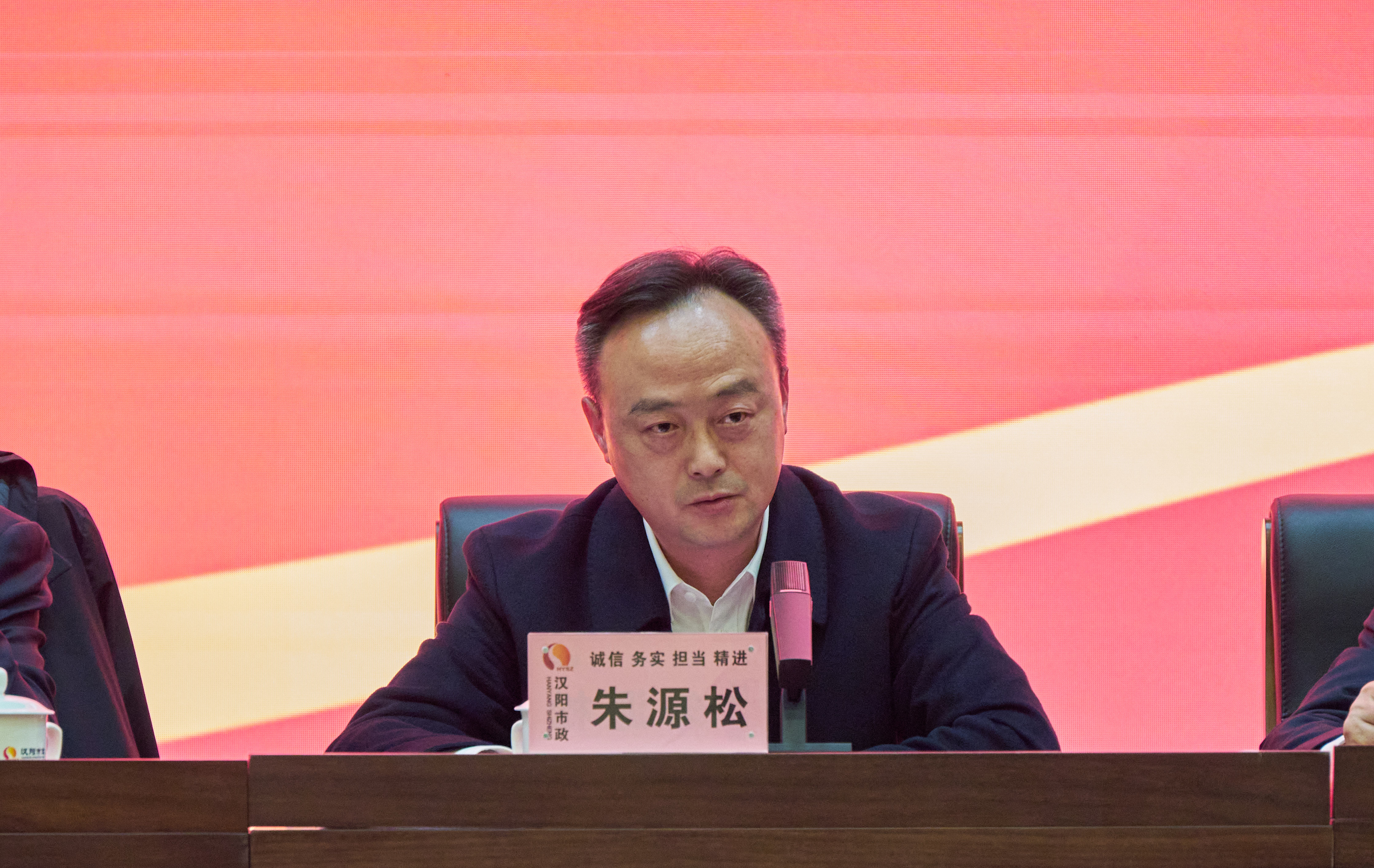漢陽區建設局局長朱源松蒞臨本次會議,漢陽市政黨委書記、董事長嚴悌文,副董事長虞志鵬,總經理王智高等黨委班子成員和集團副科級以上干部,機關部門代表,分子公司部門、項目經理及骨干員工代表參加總結大會。