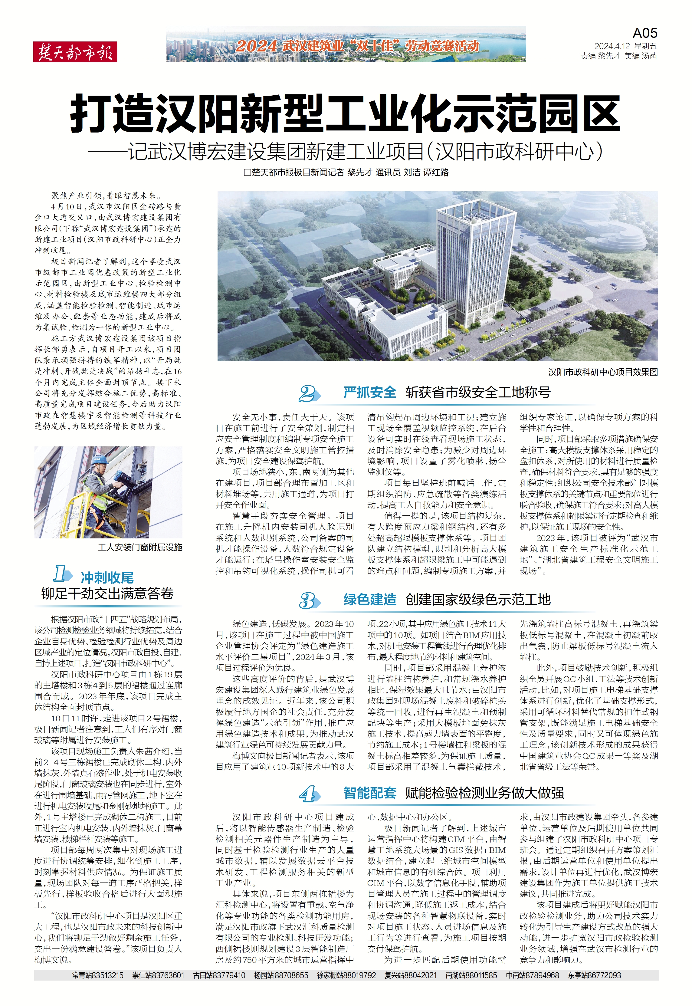 楚天都市報推出《打造漢陽新型工業化示范園區——記武漢博宏建設集團新建工業項目(漢陽市政科研中心)》專版報道。