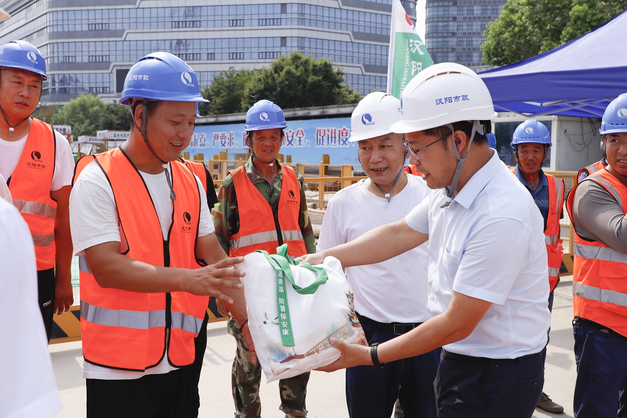 7月24日下午,武漢市總工會副主席劉斌,社聯部處長鄧向軍,漢陽區委副書記、區政法委書記黃江波,區人大常委會副主任、區總工會主席周立強,區總工會常務副主席李鐘,區總工會副主席陳新樹一行來到11號線四期土建工程第3標段項目現場開展“工會送清涼”高溫慰問活動,為高溫下堅守一線的建設者們送去了礦泉水、鹽汽水、藿香正氣水等防暑降溫物資。漢陽市政黨委委員、總經理王智高,黨委副書記、紀委書記冷雪陪同慰問。
