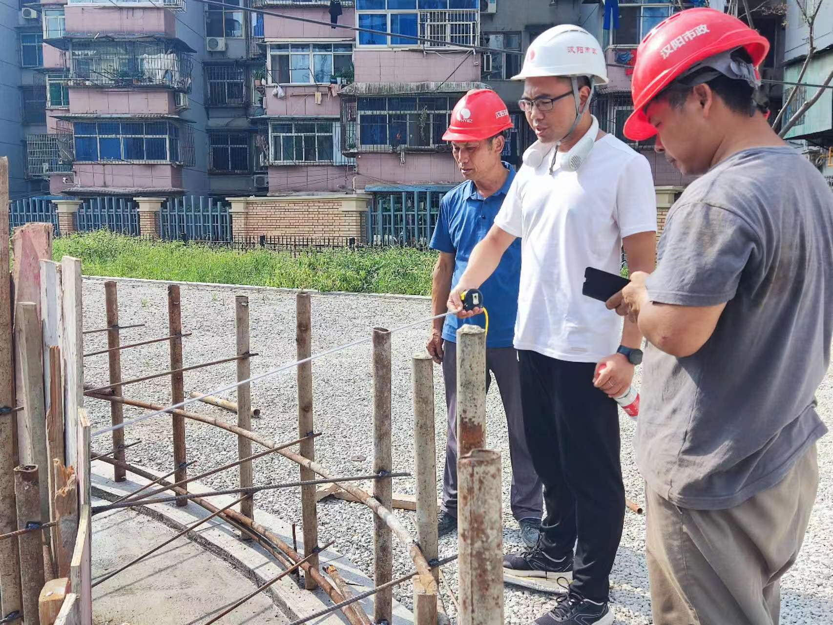 武昌生態文化長廊工程(友誼大道—建設十路)PPP項目涵蓋房建、園建、排水、橋梁、綠化、配套專業。由于項目涉及專業雜、技術覆蓋面廣,施工過程中往往會出現意想不到的問題。在緊鑼密鼓推進工程之時,肖超測量發現,鐵軌立柱出現了不直順的情況。這個問題既影響景區美觀,也會導致景墻無法正常安裝,嚴重延誤工程進度。團隊嘗試了多種方案,但始終無法控制住鐵軌垂直偏差。